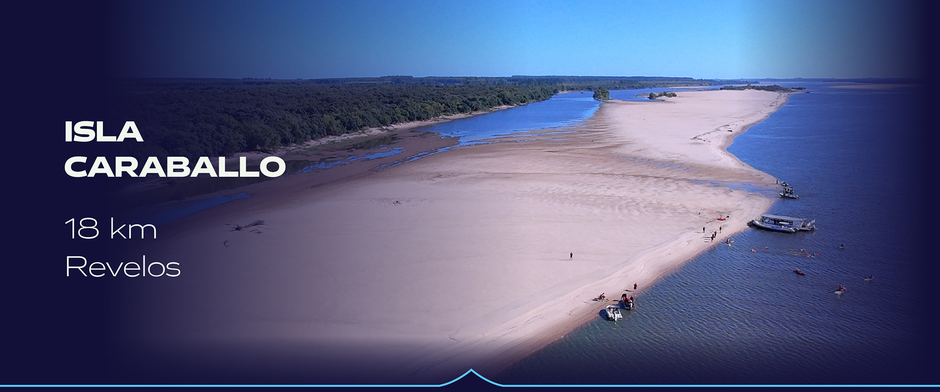 El primer tramo de este emocionante recorrido de 18 km en aguas abiertas comienza en el arenal Caraballo, una formación tipo isla en medio del majestuoso río Uruguay 🏝️.